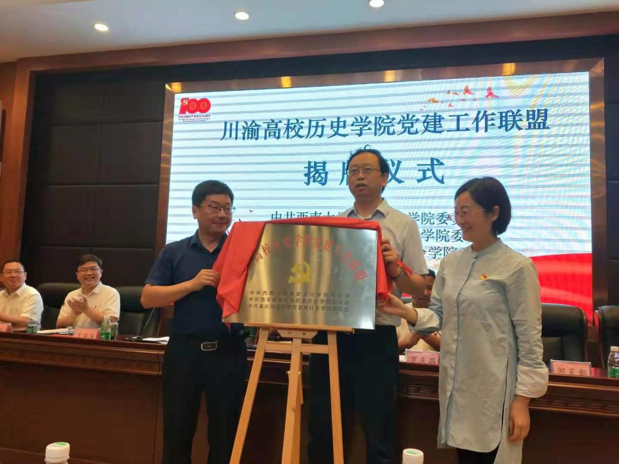 参观调研结束后,三校全体党员参加了川渝高校历史学院党建工作联盟签约仪式,由罗庆昌书记代表必赢3003no1线路检测中心必赢3003no1线路检测中心党委正式签约,必赢3003no1线路检测中心邹芙都同志参加揭牌仪式,教工一支部书记刘志英接收授牌。此次三校联盟签约,有助于历史学者组成的党支部发挥学科优势、专业优势和人才优势,通过联盟推动川渝地区高校党建工作更上一层楼,三校历史学院党支部将会抓住契机,在今后进一步加强交流、互通党建工作经验,推动党建与事业的融合发展,在成渝双城经济圈建设和民族复兴大任中建功立业。最后,在“党课开讲啦”环节,必赢3003no1线路检测中心必赢3003no1线路检测中心副院长赵国壮同志、西华师范大学必赢3003no1线路检测中心院长朱华同志和重庆师范大学历史与社会学院党委书记王丽萍同志分别作为历史学者代表,为全体党员讲授党史示范课。