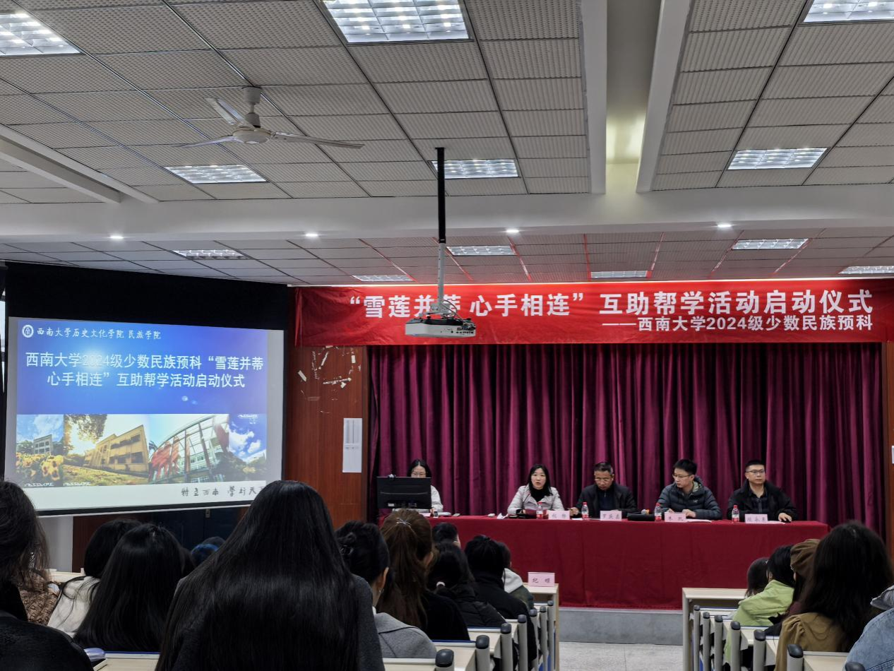 为持续响应习近平总书记关于各族人民“手足相亲、守望相助”的号召,铸牢中华民族共同体意识,推动不同民族学生间的思想交流、学习交往、生活交友、情感交心、文化交融,11月29日下午必赢3003no1线路检测中心2024级少数民族预科"雪莲并蒂 心手相连"互助帮学活动启动仪式在荟文楼442举行。学院党委书记罗庆昌、党委学生工作部副部长、学生工作处副处长、武装部副部长朱凯、学院党委副书记张静、学院副院长陈永亮出席,预科班主任张哲鉴老师、辅导员亚库普、纪蝶老师以及全体2024级少数民族预科学生参加。活动由学院党委副书记张静主持。