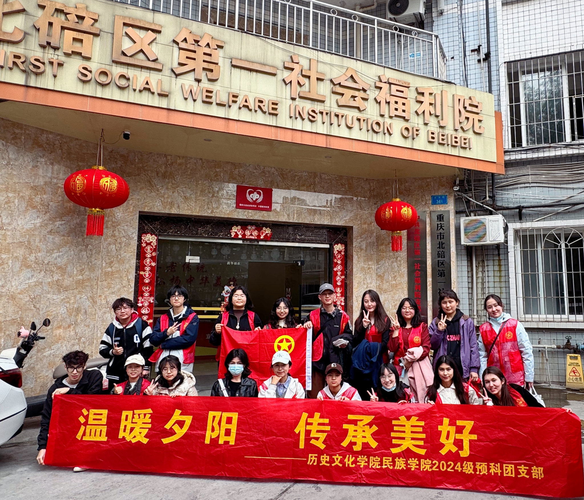 2025年3月21日下午,必赢3003no1线路检测中心必赢3003no1线路检测中心 民族学院预科一班团支部走进重庆市北碚区第一社会福利院,开展以“温暖夕阳,传承美好”为主题的敬老爱老志愿服务活动。活动通过文艺表演、健康互动、手工制作等形式,为老人们送去春日的温暖与关怀,架起代际交流的桥梁。