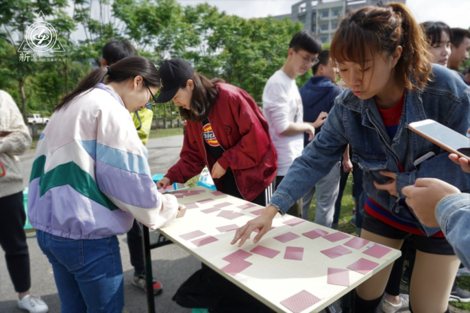 首先,大家随机分为6个小队,在主持介绍游戏规则和活动奖励之后,大家立刻燃起斗志。第一个游戏“翻扑克牌”开始前,队员们七嘴八舌地讨论起策略,对如何取得好的成绩提供自己的建议。游戏一开始,每一个人都集中注意力,小心翼翼地把牌放到讨论中共同约定好的位置。这项游戏不光要看队员们的运气,更是需要队员之间的默契配合,每一个队伍的表现都令人出乎预料,在短时间内完成了挑战。