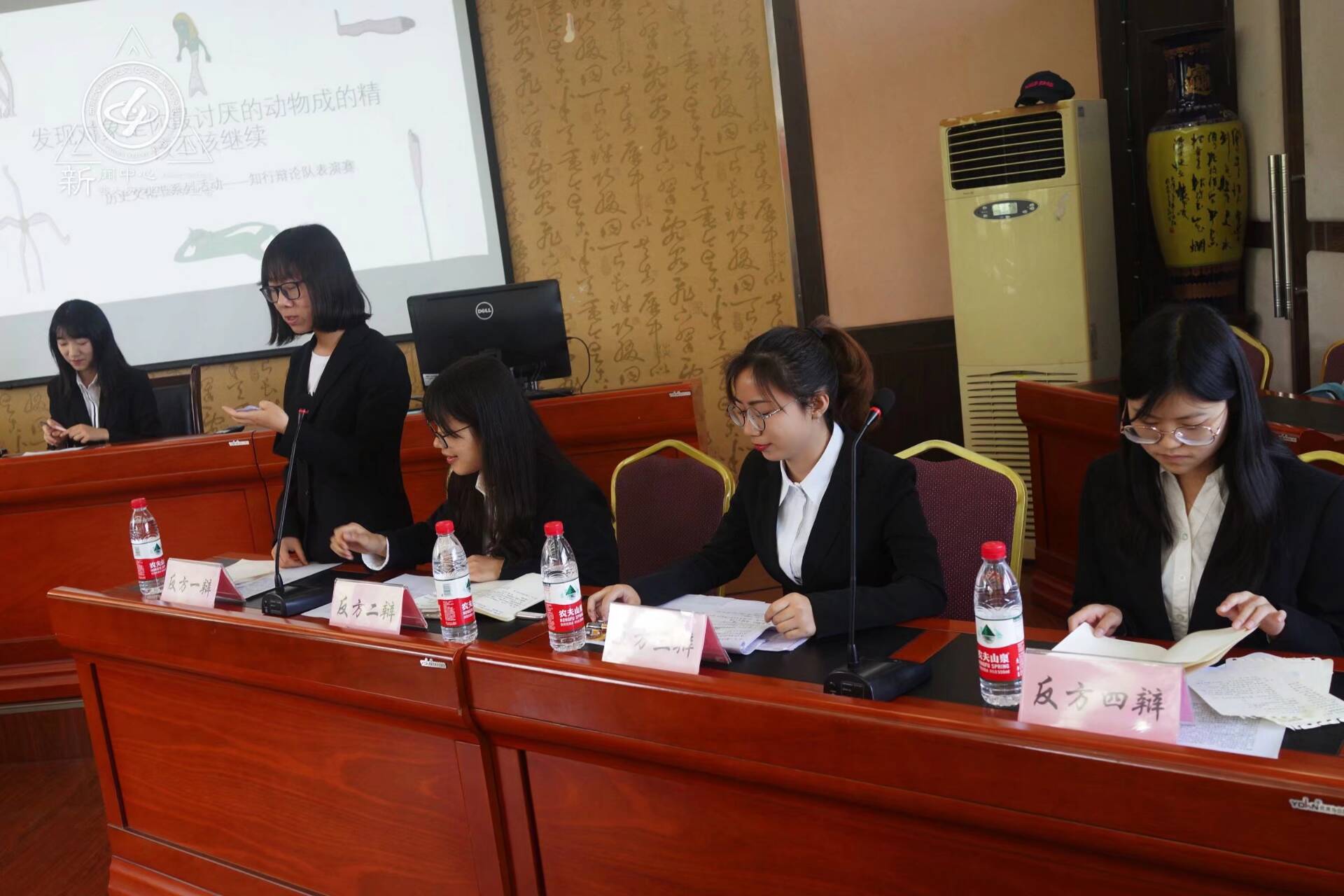 知行辩论队全体成员都为此次表演赛做足了准备,而前期的宣传也让大家对本场比赛翘首以待。在选手们自我介绍之后,本次比赛正式开始,赛场气氛骤然变得紧张而激烈。
