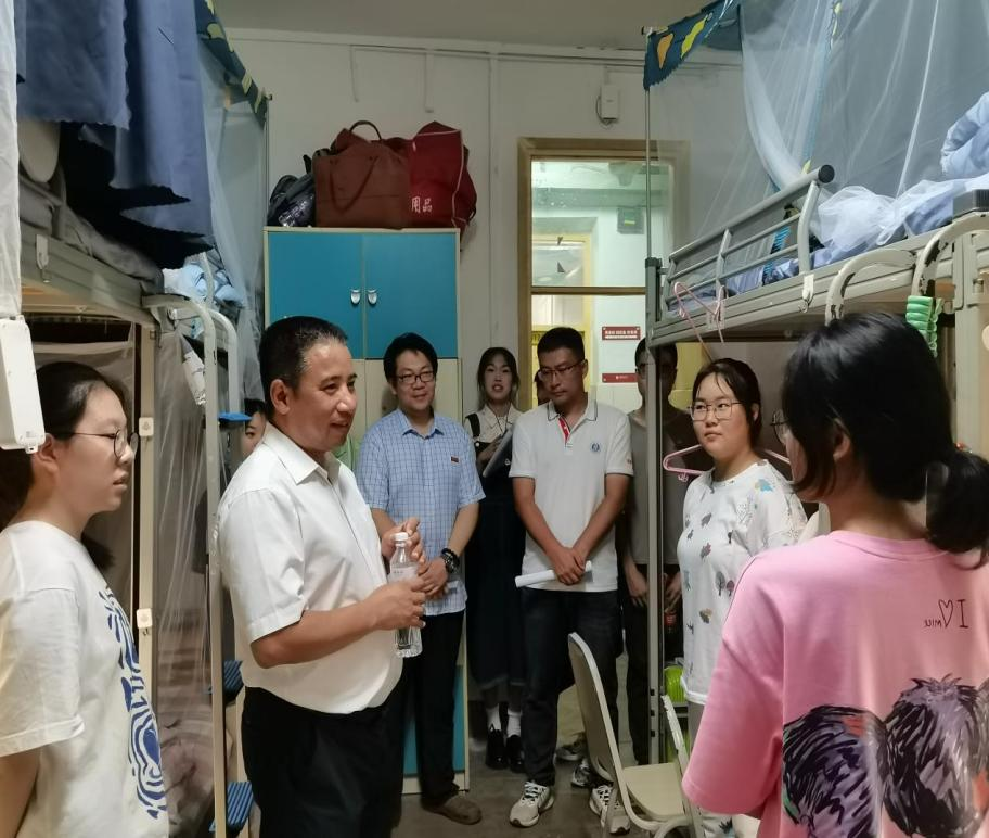 为做好新生接待工作,切实了解新生入住情况,9月10日晚,学院全体领导班子成员、新生辅导员、学院研究生会和团学组织干部分成4组全覆盖走访了2023级研究生、本科、预科共计117间新生寝室。