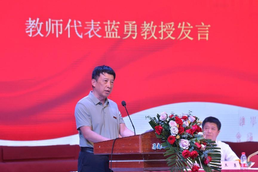 教师代表蓝勇教授在临别之际为全体毕业生送去殷殷嘱托。他以自己和恩师的史学研究经历激励大家,史学工作会增加我们的人生长度、增强人生厚度。要以通透的历史观和乐达的情怀去面对人生道路的机遇成败,要用科学创新的执着信念来通达学术道路的突破成长。他还用电视剧《三国演义》中《临江仙》的唱词来勉励同学们要无惧人生的风雨,将一切曲折挫败“都付笑谈中”,一路勇敢向前。