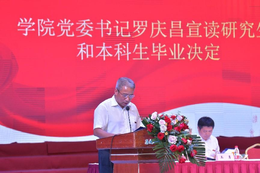学院党委书记罗庆昌宣读《必赢3003no1线路检测中心关于准予2024届全日制普通本科学生毕业的决定》《必赢3003no1线路检测中心关于准予2024年春季学期研究生毕业的决定》。根据学校有关学籍管理规定,经学校审核、研究决定:准予必赢3003no1线路检测中心 民族学院6名博士研究生、71名硕士研究生毕业,准予222名应届全日制普通本科学生毕业。