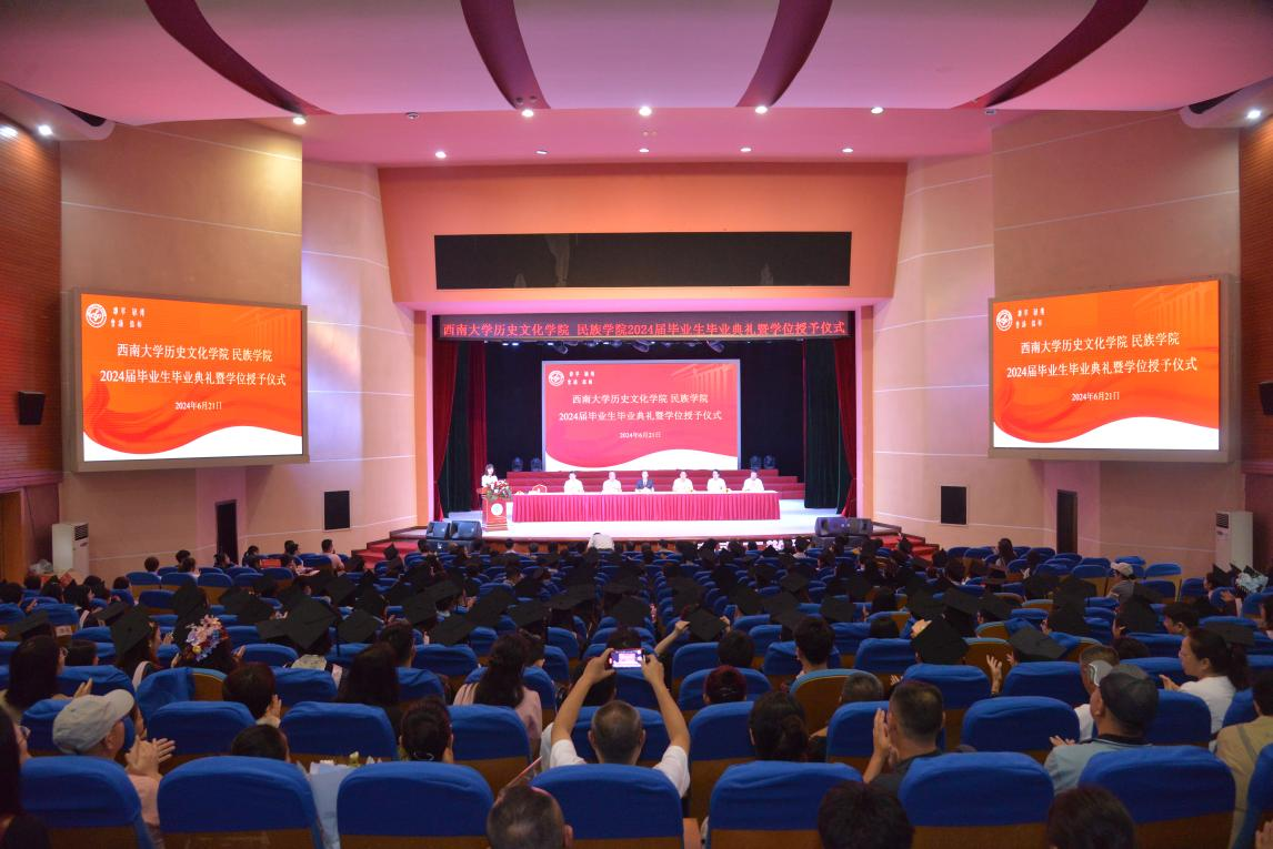 6月21日下午,必赢3003no1线路检测中心 民族学院2024届毕业生毕业典礼暨学位授予仪式在学校光大礼堂隆重举行。学校党委副书记黄杰、必赢3003no1线路检测中心 民族学院领导班子成员、科级干部、全体教师、全体辅导员和2024届全体毕业生、2024届毕业生家长代表参加典礼暨授位仪式。毕业典礼由学院党委副书记张静主持,授位仪式由学院副院长李晶主持。
