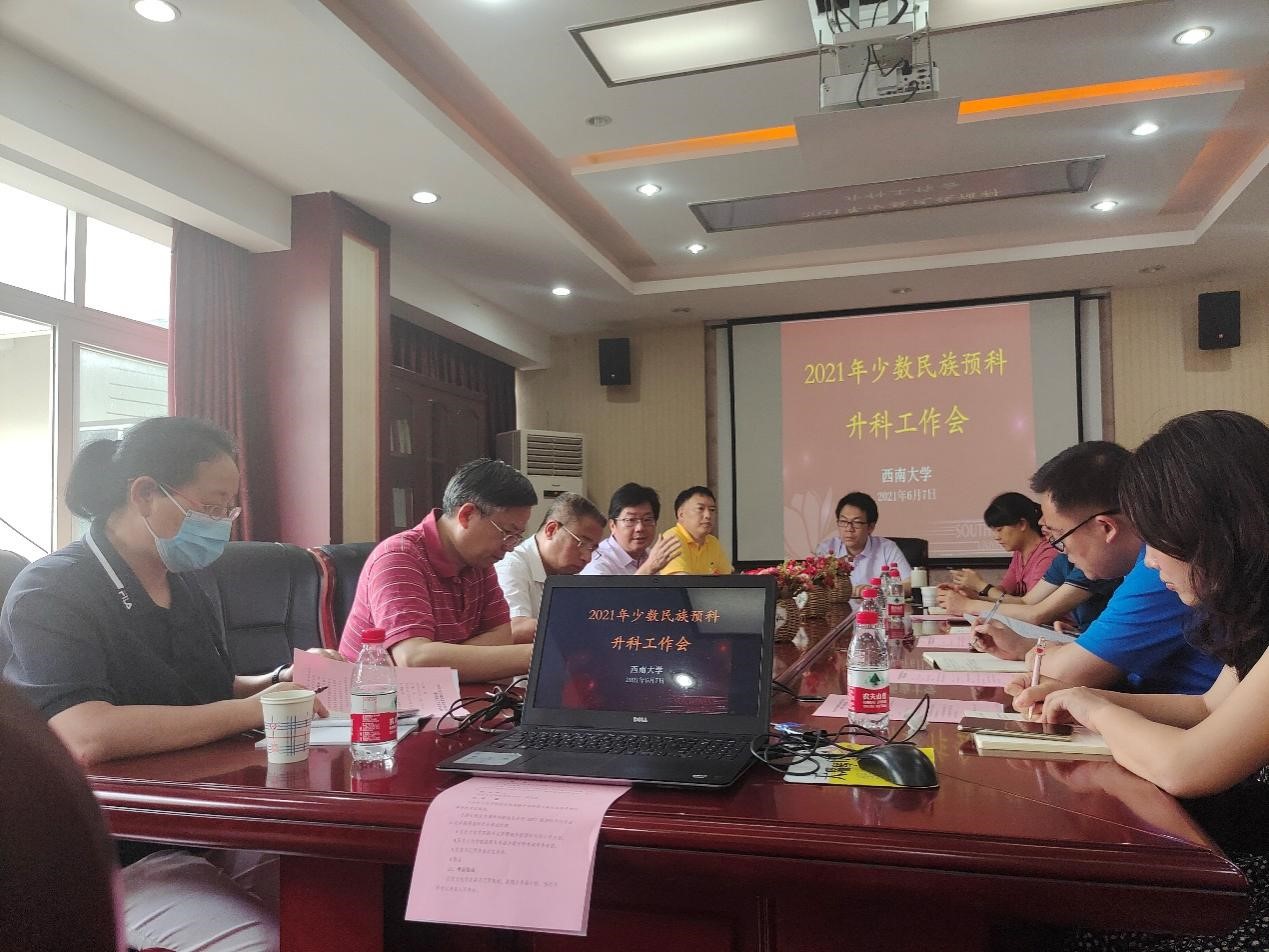 2021年6月7日上午,必赢3003no1线路检测中心 民族学院于荟文楼520会议室召开2021年少数民族预科升科考试工作会。学校民族工作领导小组、教务处、招生就业处、保卫处、校医院等相关单位部门的负责人与学院党政领导、少数民族预科教师、辅导员等参加会议。