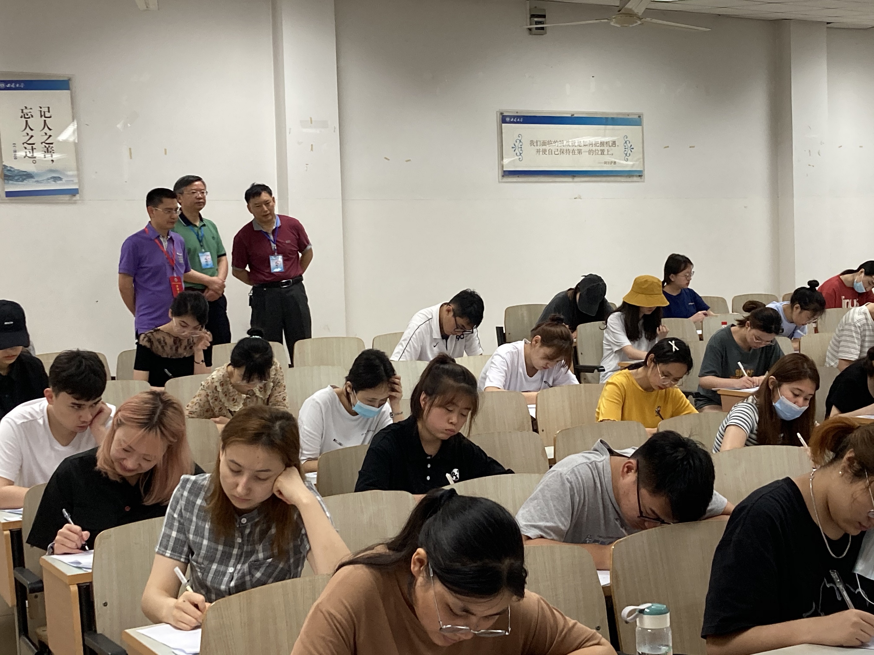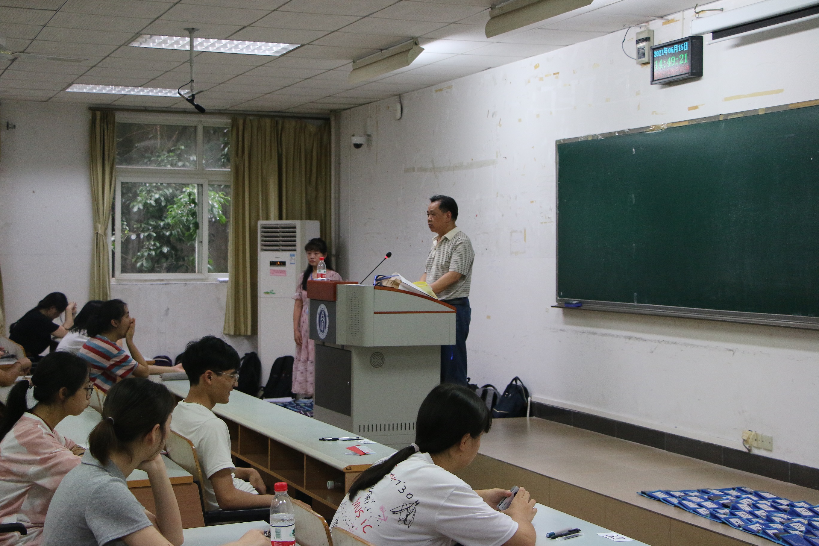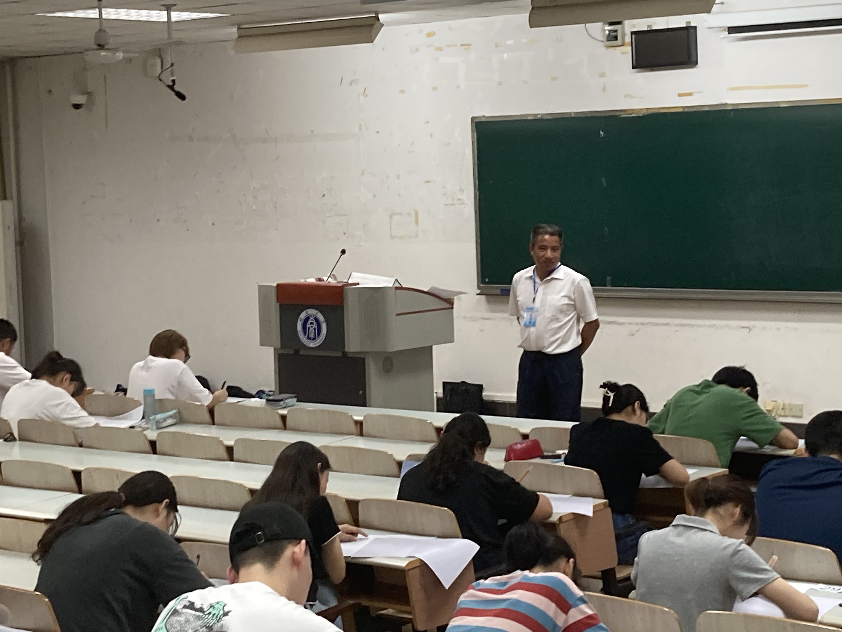 主考人在宣读考试纪律并分发试卷