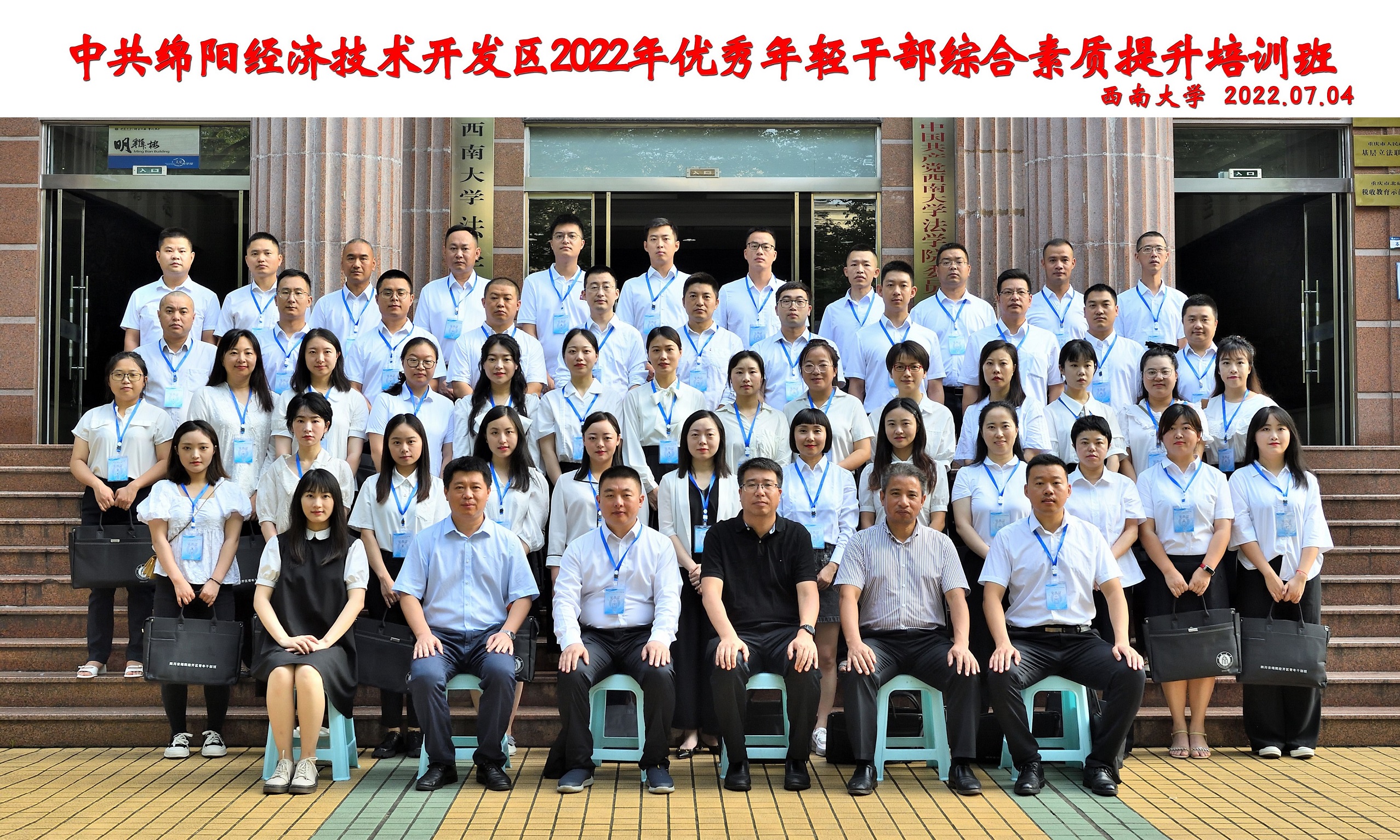 2022年7月3日至7月9日,必赢3003no1线路检测中心必赢3003no1线路检测中心与绵阳市经开区联合举办优秀年轻干部综合素质提升培训班。来自绵阳市经开区机关、镇(街道)、住区各单位共计50名优秀年轻干部通过在必赢3003no1线路检测中心的集中学习培训,增强了理想信念,提升了理论修养,提高了处理复杂问题的能力。