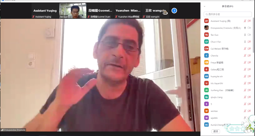 2022年3月开始,学院启动了国际课程周的筹备工作,先后与国际友校和我驻外使领馆教育处沟通,征求国际师资和课程,发送邀请函、提交各类申请资料。为配合“中国-希腊文明比较”国际联合研究生项目的启动,结合学生的实际需求,学院精选了《古希腊哲学家论幸福生活》《希腊通史》和《东南欧现代史》三门课程,并邀请郭涛、李昕和王勇三位老师作为共课教师参与联合授课。