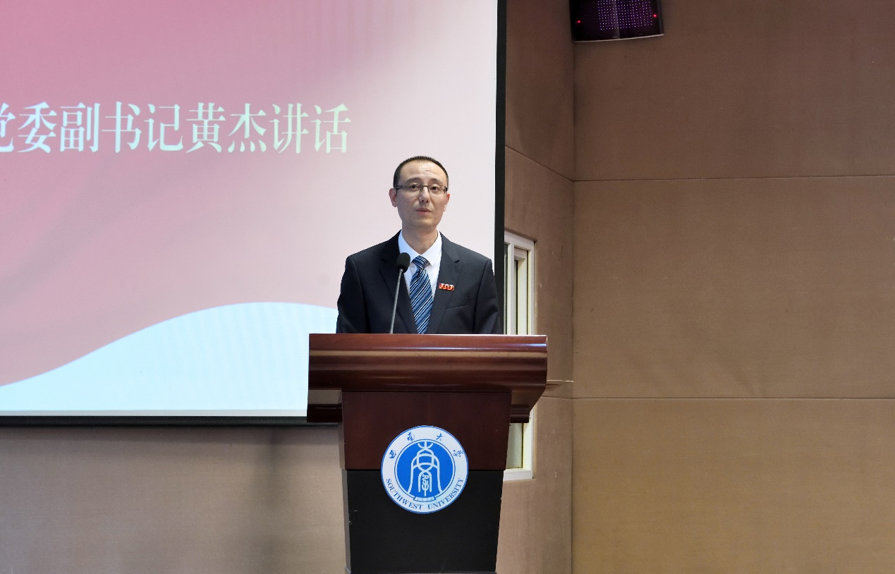 在两位毕业生代表发言后,低年级学生代表、本科2020级杨宇洁同学向全体毕业生学长学姐送出了真挚祝福,并代表学院全体低年级同学表态,将弘扬2023届毕业生的优良传统,不断锤炼自身本领,继续为学校和学院争光。