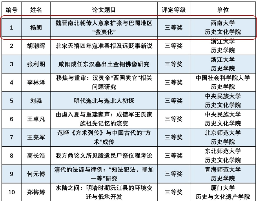 近日,学院世界史博士生杨晨颖撰写的论文获北师大首届“励耘”全国历史学研究生论文竞赛二等奖,中国史硕士生杨朗撰写论文获三等奖。