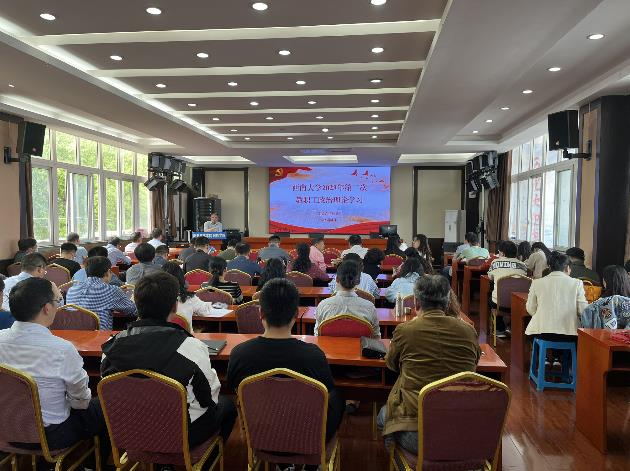 本次政治理论学习由学院党委书记罗庆昌同志主持,学院党政领导、教职工参加此次会议。本次会议深入学习了习近平总书记关于国家安全工作的重要论述、教育部关于高校教师违反职业行为十项准则警示案例(第10-11批)、新一轮本科教育教学审核评估方案概述与实施要点,以及传达学习上级和学校全面从严治党工作会议精神,并结合师德师风、意识形态、安全稳定、学生就业等工作进行了宣传教育和工作部署。