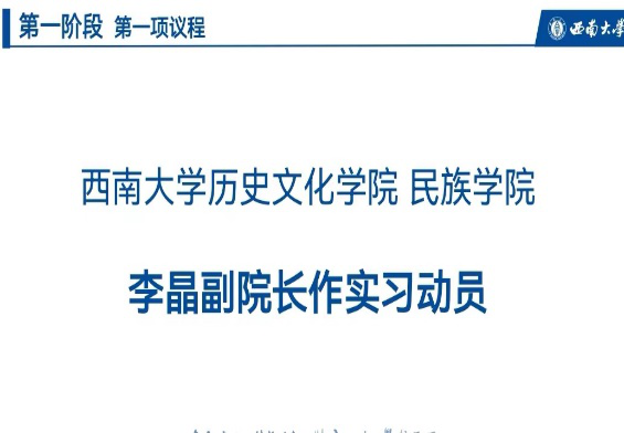 李晶副院长指出,教育实习是师范生专业成长的必须环节。纸上得来终觉浅,绝知此事要躬行。教育实习提供了真实的场景,还配备了专门的指导教师(包括本校的指导老师和实习学校指导教师),它真正沟通了理论与实践、理想与现实、大学课堂与中学讲台。他对同学们提出三点希望:第一,树立角色意识,以为人师表的标准严格要求自己,以实习学生的身份踏实努力;第二,贯彻团队意识,积极与指导老师沟通学习,同学之间要互帮互助;第三,坚持历史意识,在教学过程中,体现并提升自己的历史学专业素养。