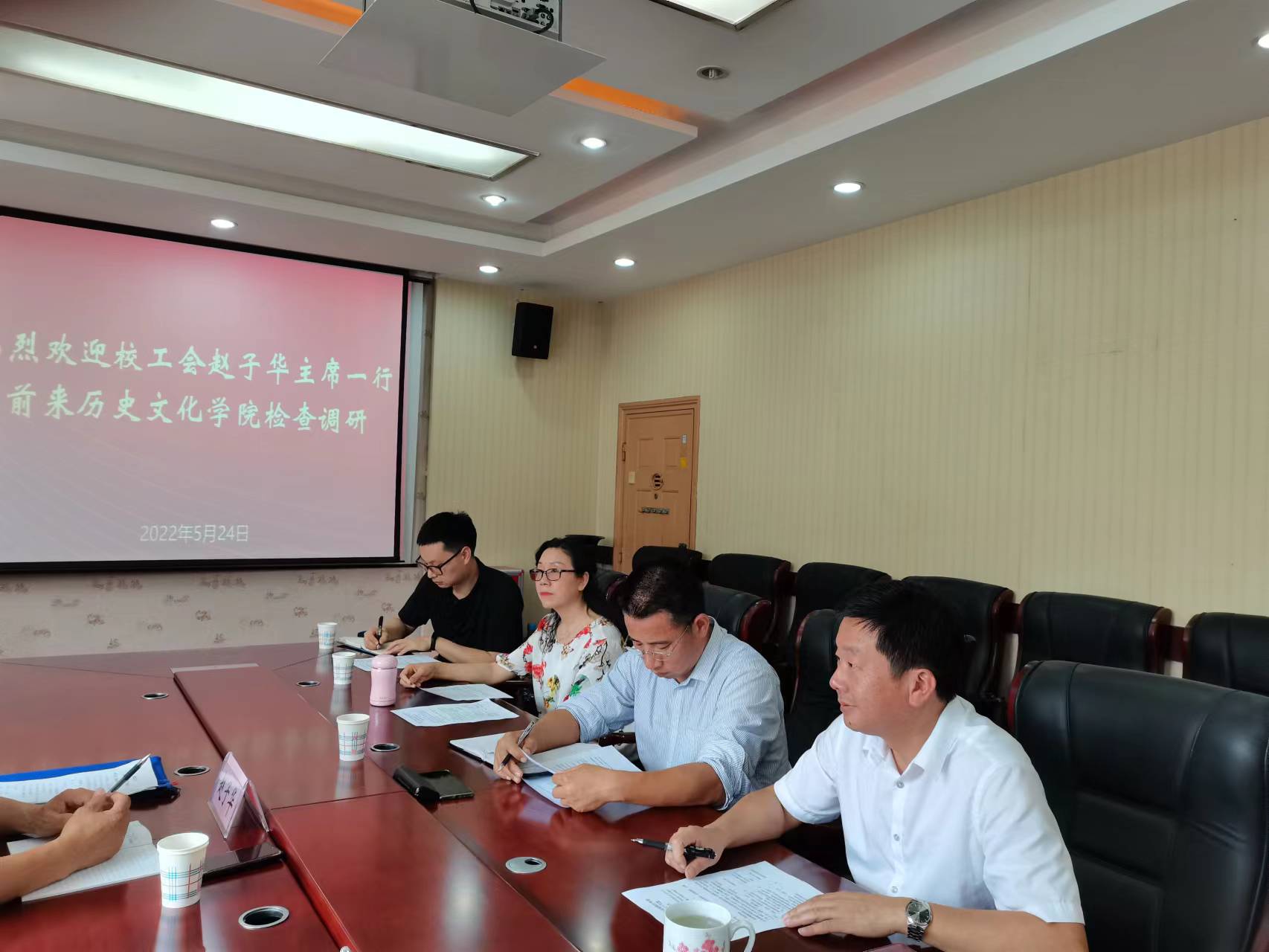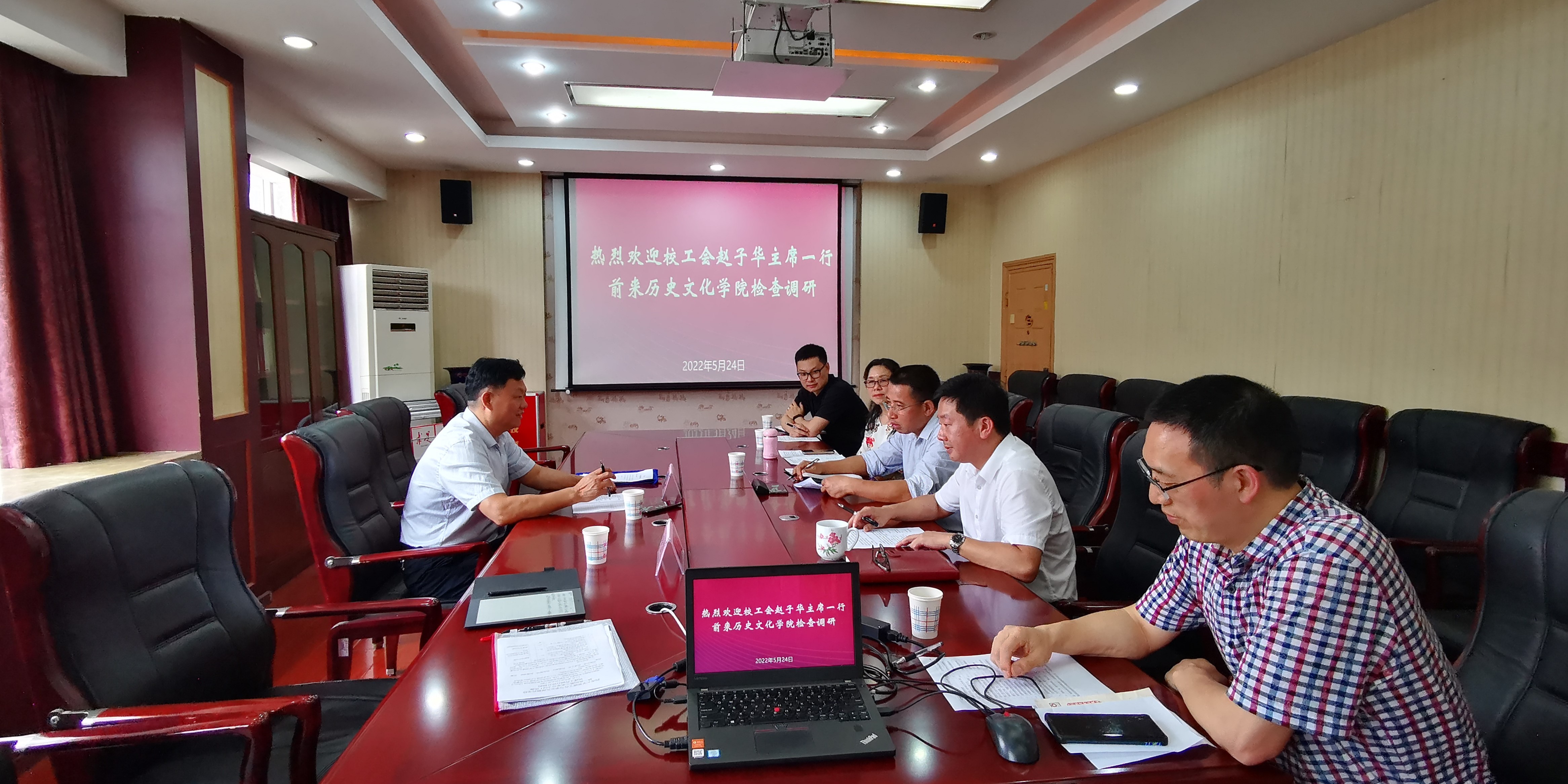 2022年5月24日下午,必赢3003no1线路检测中心校工会主席、教代会主任赵子华一行到必赢3003no1线路检测中心 民族学院走访调研、指导工作。学院罗庆昌书记、邹芙都院长及工会全体干部参加了会议。
