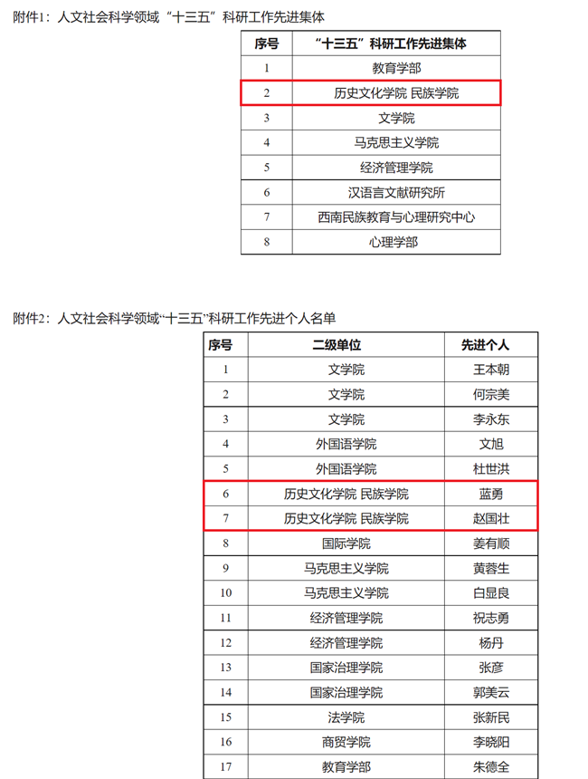 在全院师生的共同努力下,我院科研工作在“十三五”期间取得突出成绩,成功入选科研工作先进集体;学院蓝勇教授、赵国壮教授获评科研工作先进个人。此次科研奖励的取得,为学院“十三五”期间的科学研究画上了圆满句号,也将激励全院师生继续在“十四五”期间获得更进一步的突破!