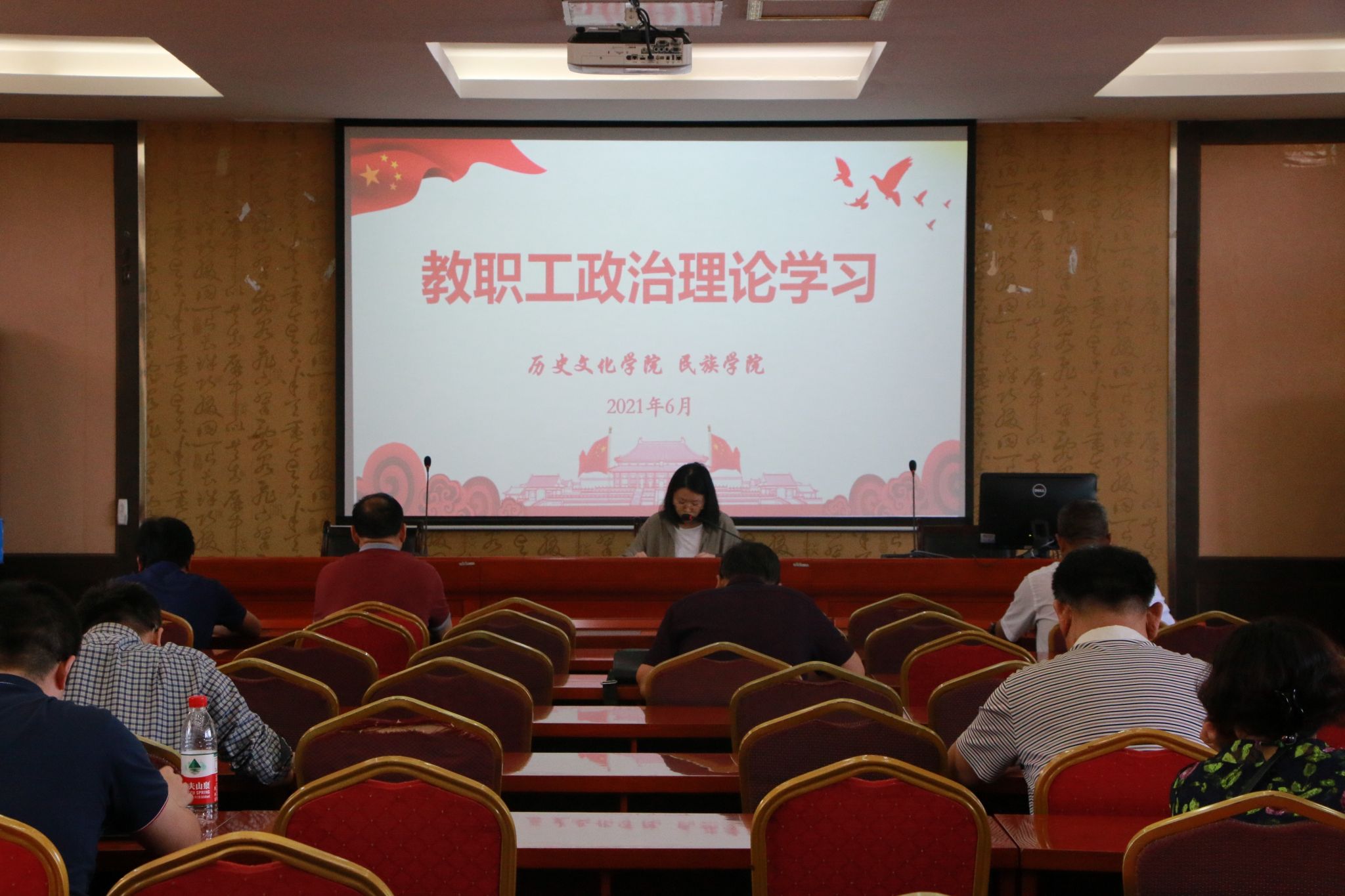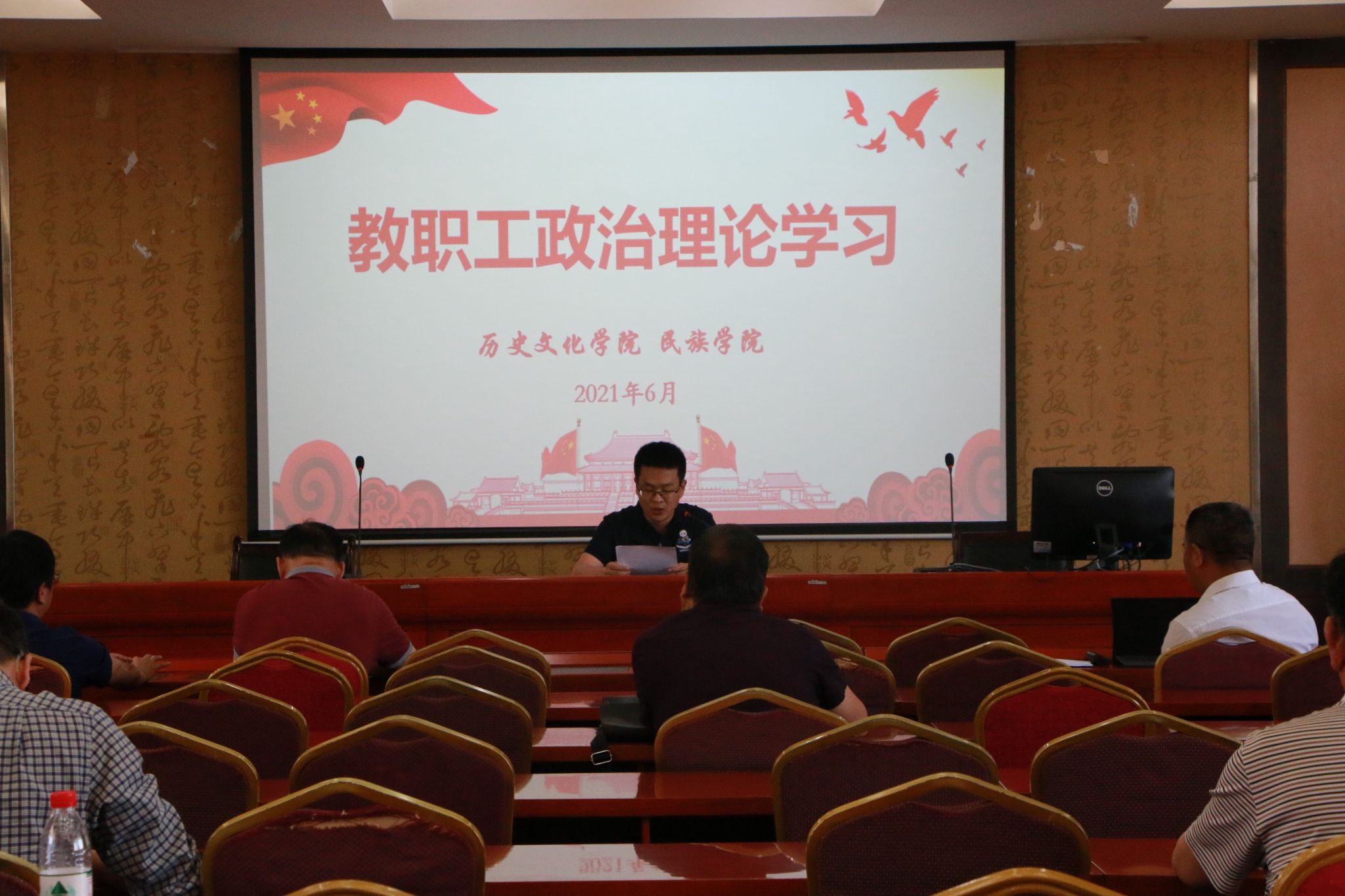 2021年6月4日下午,必赢3003no1线路检测中心党委组织全院教职工在荟文楼7楼报告厅进行2021年第六次政治理论学习。此次大会的主要内容是传达学校近期工作会议精神,汇报学院目前主要工作开展情况,并开展政治理论学习。会议由学院党委书记罗庆昌主持。