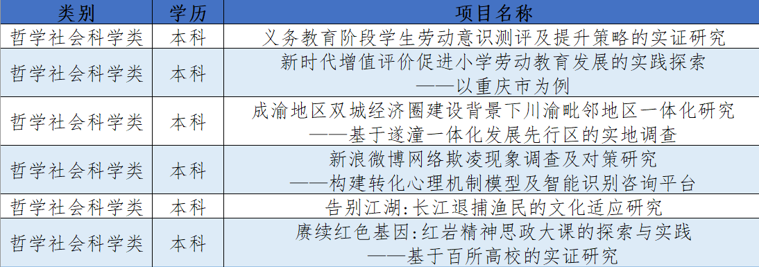 2021年5月20日,第十七届“挑战杯”全国大学生课外学术科技作品竞赛重庆市选拔赛决赛在重庆大学A区举行,经过决赛激烈的角逐,由我院民族学方向田阡教授、付来友老师、庄伟老师指导的《告别江湖:长江退捕渔民的适应性研究》(哲学社会科学类)作品成功晋级本次第十七届“挑战杯”全国大学生课外学术科技作品竞赛全国赛。