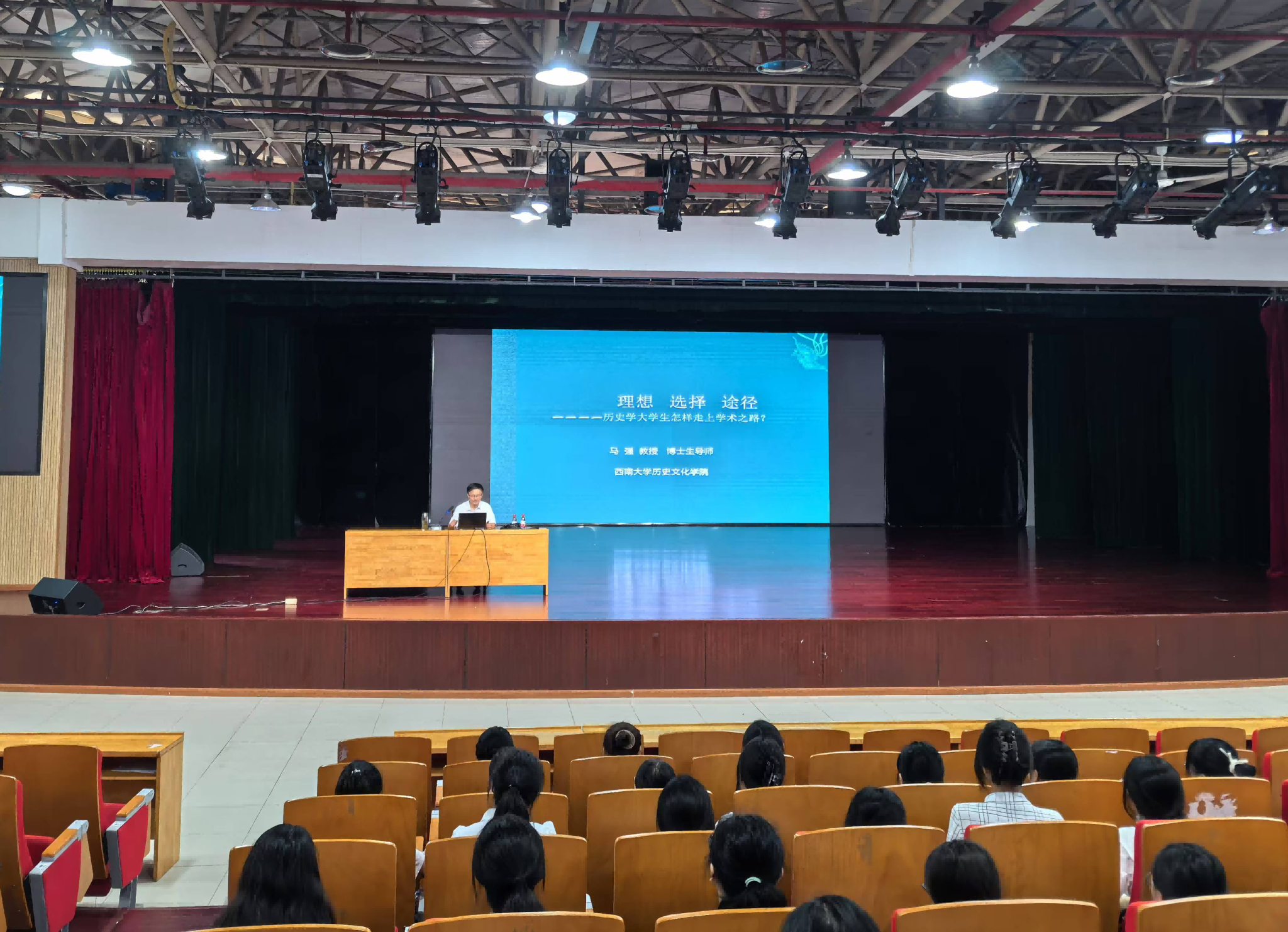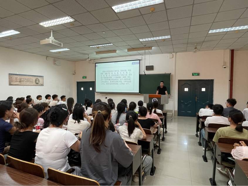 2024年9月11日上午,在圆顶三楼报告厅,马强教授以“理想 选择 途径—历史学大学生怎样走上学术之路”为题为历史学和历史学(师范)新生开展专业导学。马强教授聚焦文科大学生为什么要走学术研究之路、文科大学生怎样走上学术研究之路两大问题,细致讲解了历史学研究的意义、理论与方法,结合自身学术经历从理想、选择、途径三个维度对历史学大学生走上学术之路给出了详细的路径指导,他强调历史学学习有五把钥匙。最后马强教授勉励历史学新生要传承“铁肩担道义,妙手著文章”的精神,积极树立投身学术研究的远大目标。本次导学有力地启迪、激发了新生的大学专业学习兴趣和专业志向。
