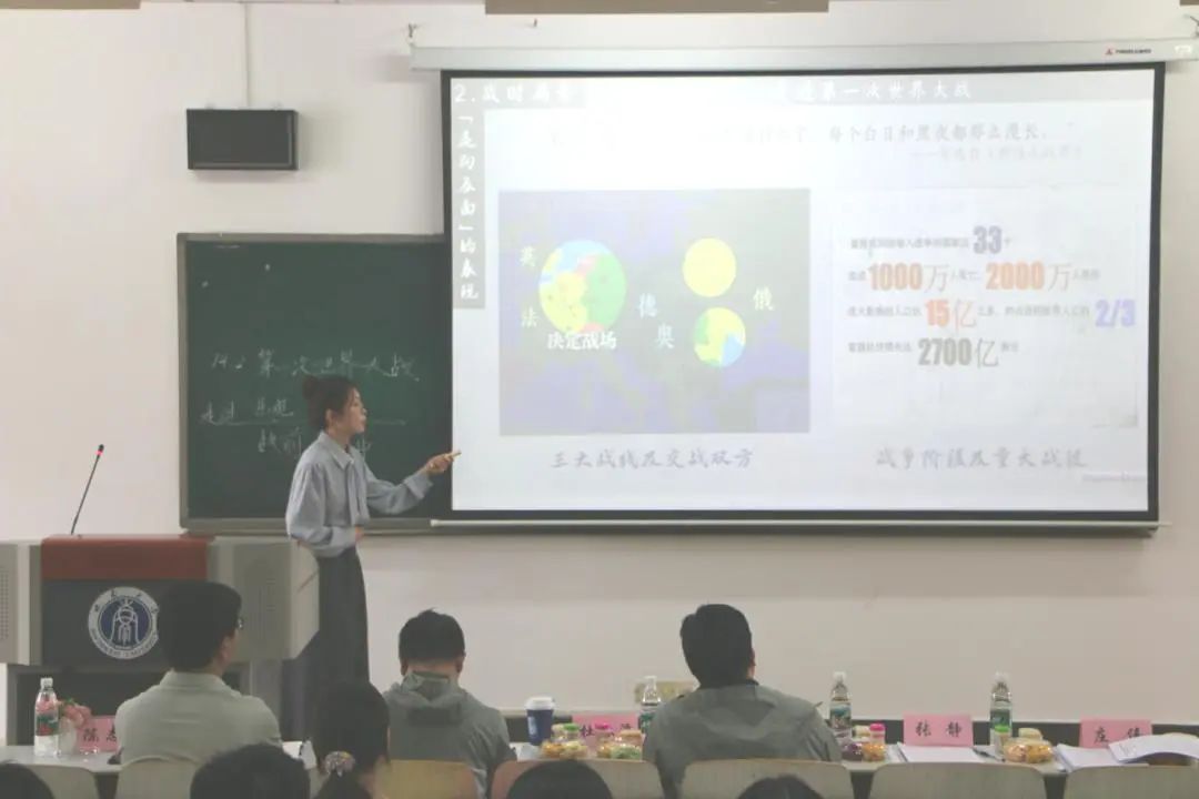 比赛现场,十二位参赛选手依据抽签顺序依次登台,展开限时模拟授课。他们从自选教材内容出发,紧扣历史学科核心素养,精心规划教学环节,环环相扣、层层递进。在教学过程中,选手们充分借助多媒体工具,融入多样化的互动策略,把抽象的历史知识转化为生动有趣、通俗易懂的课堂内容,赢得现场师生的阵阵好评。选手们规范的课堂语言、得体的肢体仪态和工整的板书设计,充分彰显了我院师范生扎实的教学基本功。
