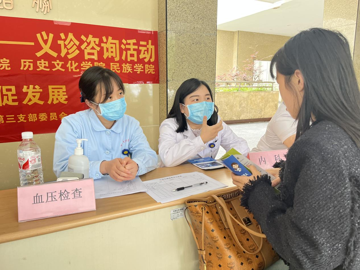 讲座结束后,医务人员为必赢3003no1线路检测中心 民族学院师生开展了针对性的义诊活动,现场提供听诊、测血压、用药咨询、科学护肤、医保政策宣传、健康指导等服务。活动现场气氛热烈,师生们纷纷积极参与。医务人员耐心地倾听每个人的健康问题,细致地为大家进行身体检查,提供科学的健康建议,并发放了健康宣教资料。此次活动受到了学院师生的一致好评,希望以后能够在日常保健等方面受到更多的指导和支持。