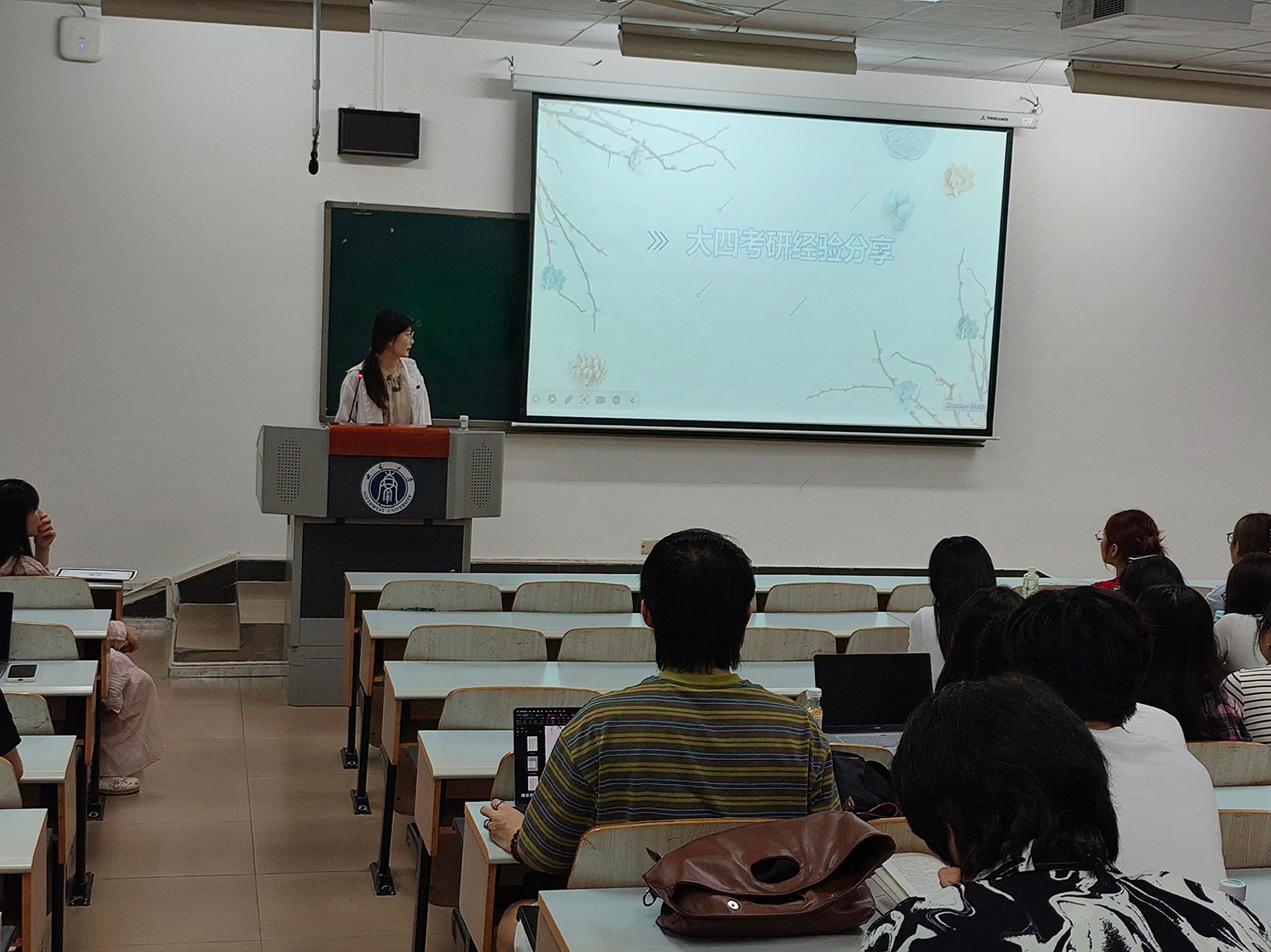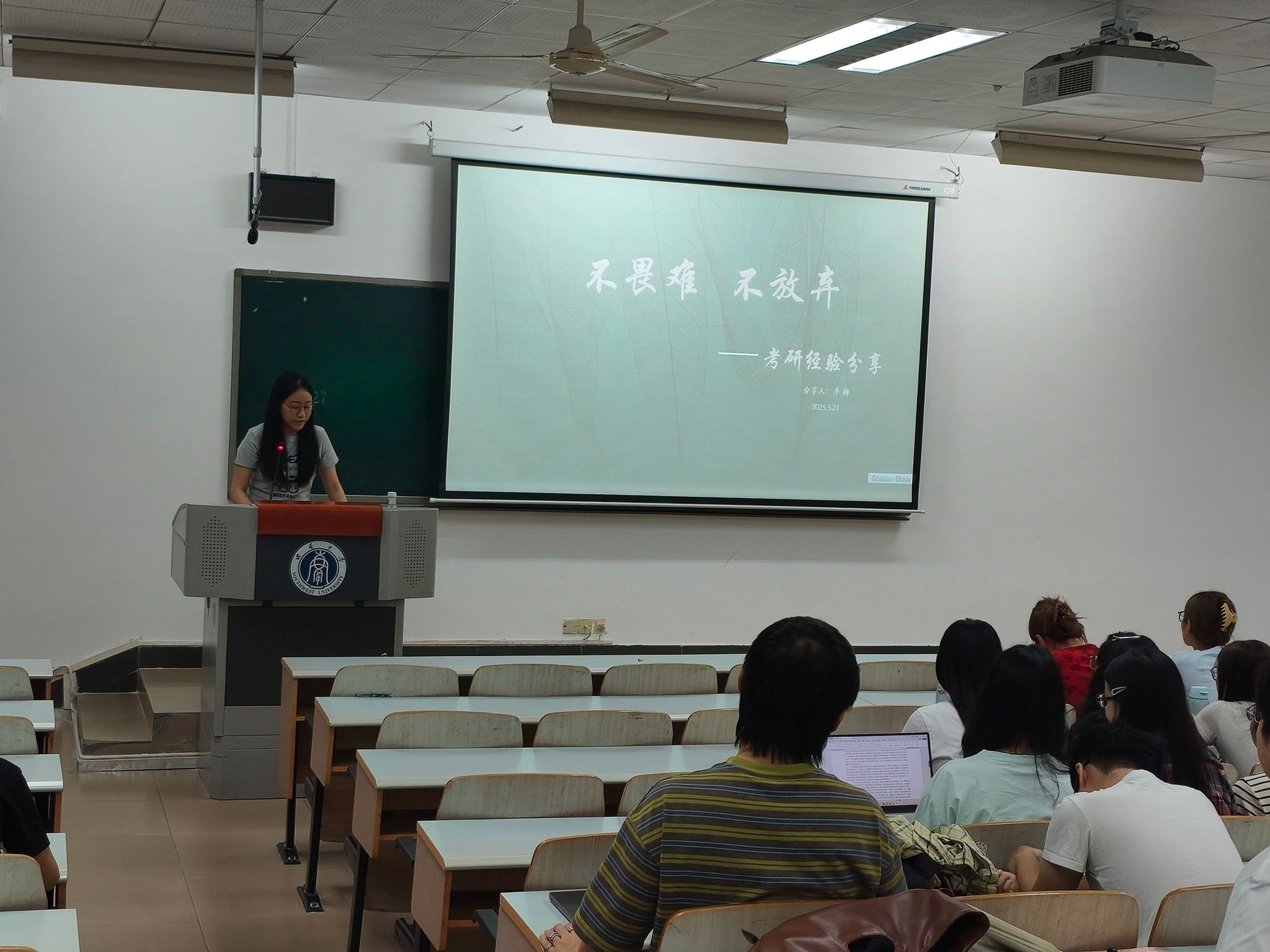 四位2025届毕业生代表丁丽庭、伍婕、席豆豆、李梅四位同学分享成功升学外校中所积累的宝贵经验。她们分别结合自己的备考经历,分享了历史学、民族学专业在不同院校中的考研范围和侧重点,从英语、政治、专业课等方面与学弟学妹们交流学习方法及时间安排等技巧,并推荐了权威好用的公众号、教材教辅、网课等实用资源。